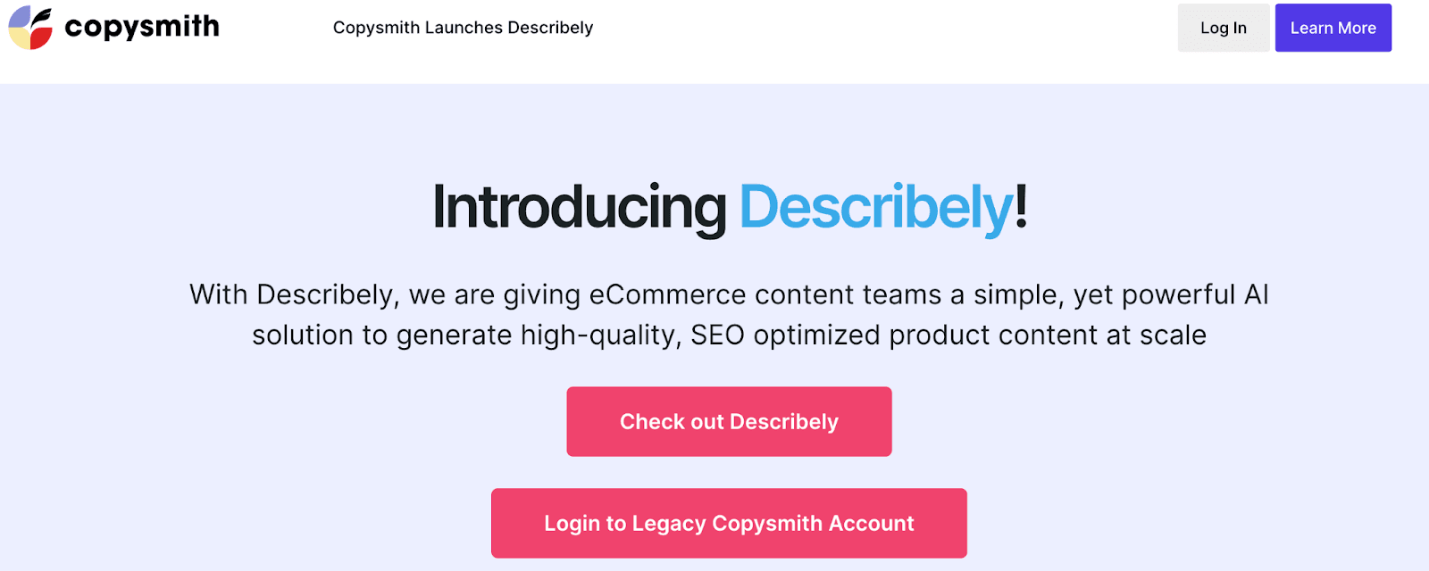 Copysmith is an AI-powered content writing solution for eCommerce storefront owners. It allows eCommerce writers to generate product descriptions in bulk and integrates with a variety of prominent eCommerce platforms, including Shopify, Amazon, WooCommerce, Wix, and more.