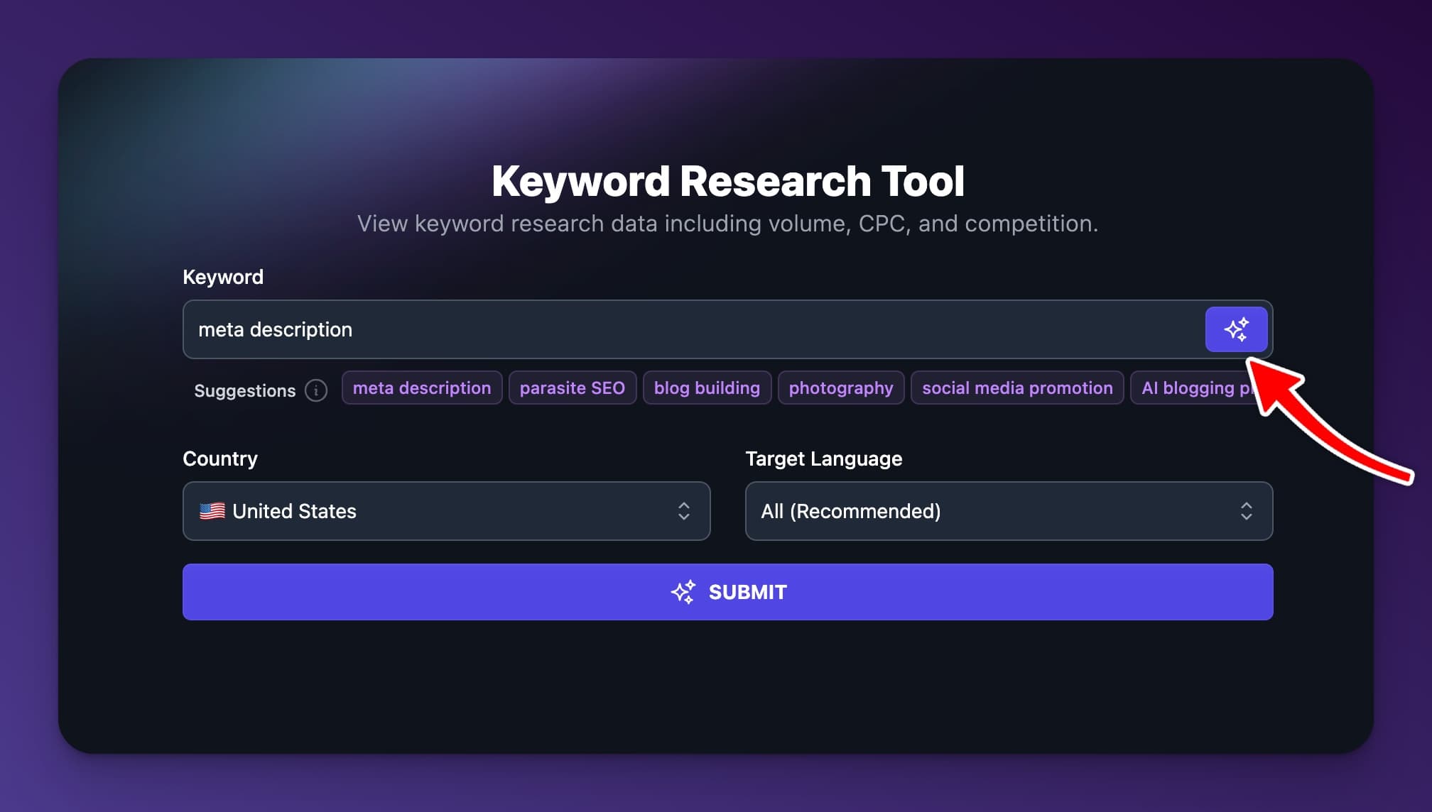 - Option to select a target language in the keyword research tool.
