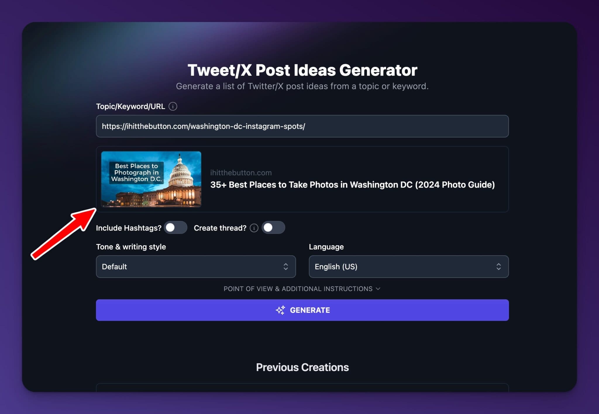 Preview URLs in many tools to ensure you’ve got the right URL before submitting. This is great in the content gap and YouTube to blog post tool to ensure you’ve got the right URL.
